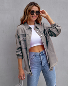 Die Lyra Jacke vereint entspannten Tragekomfort mit auffälligem Style. Ihr trendiges Distressed-Design verleiht jedem Look das gewisse Etwas. Mit Button-Down-Front, klassischem Kragen und ausgefranstem Saum bietet sie zeitlosen Charme mit modernem Touch. Perfekt zum Tragen über Crop-Tops oder Rollkragenpullovern – perfekt für entspannte Ausflüge und stilvolle Partys.
