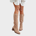 Jenny verleiht Ihrem Schritt mit seiner hohen, schlanken Silhouette und dem robusten Blockabsatz Eleganz und Stil. Diese Stiefel aus weichen, hochwertigen Materialien bestechen durch ihre dekorativen Nähte für dezenten Charme und den seitlichen Reißverschluss für müheloses Tragen. Perfekt für elegante und legere Outfits, bieten sie Komfort, Selbstvertrauen und zeitlose Eleganz.