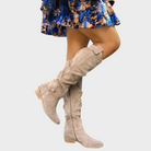 Sabina kombiniert einen lässigen Overknee-Stil mit dezenten Schnallen- und Reißverschlussdetails und bietet Komfort und Flair. Ob zu Kleidern oder über lässigen Looks – diese Stiefel verleihen sofort Eleganz. Ihre weiche Textur und der stützende niedrige Absatz machen sie ideal für den Alltag und vereinen mühelos Mode und Funktionalität.
