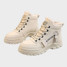Sylvia vereint sportlichen Style mit Alltagskomfort in einem trendigen High-Top-Design. Das kuschelige Futter hält Ihre Füße warm, während die Schnürung vorne und der seitliche Reißverschluss für einen bequemen Sitz und ein angenehmes Tragegefühl sorgen. Die klobige Sohle sorgt für zusätzliche Stabilität und eignet sich perfekt für lässige Ausflüge, Spaziergänge bei kühlem Wetter oder entspannte City-Looks.